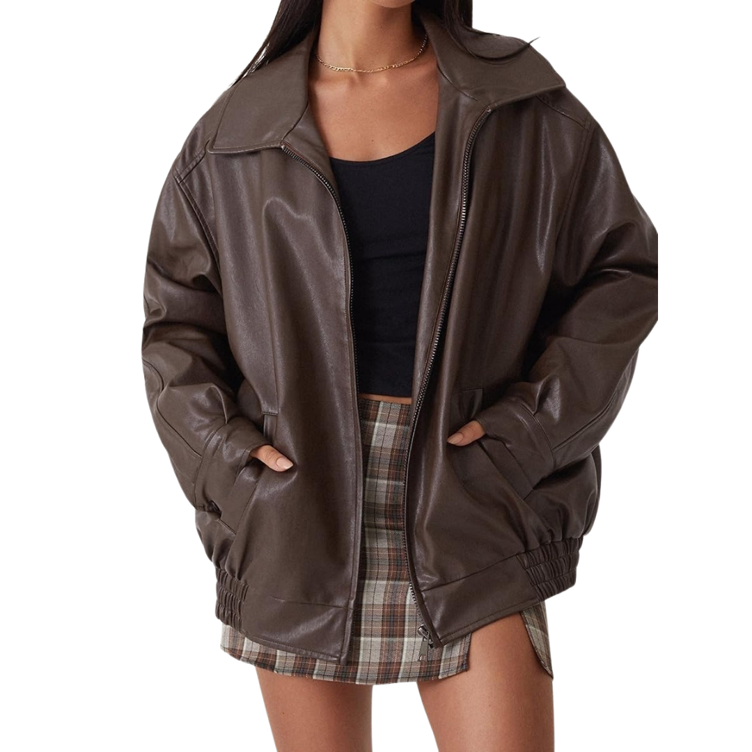 This oversized moto jacket reimagines a classic bomber silhouette with a refined yet rebellious attitude. Designed with a relaxed drop-shoulder fit and a structured collar, it offers a confident balance of comfort and edge. The sleek matte finish and functional details make it an effortless layering piece for transitional styling.