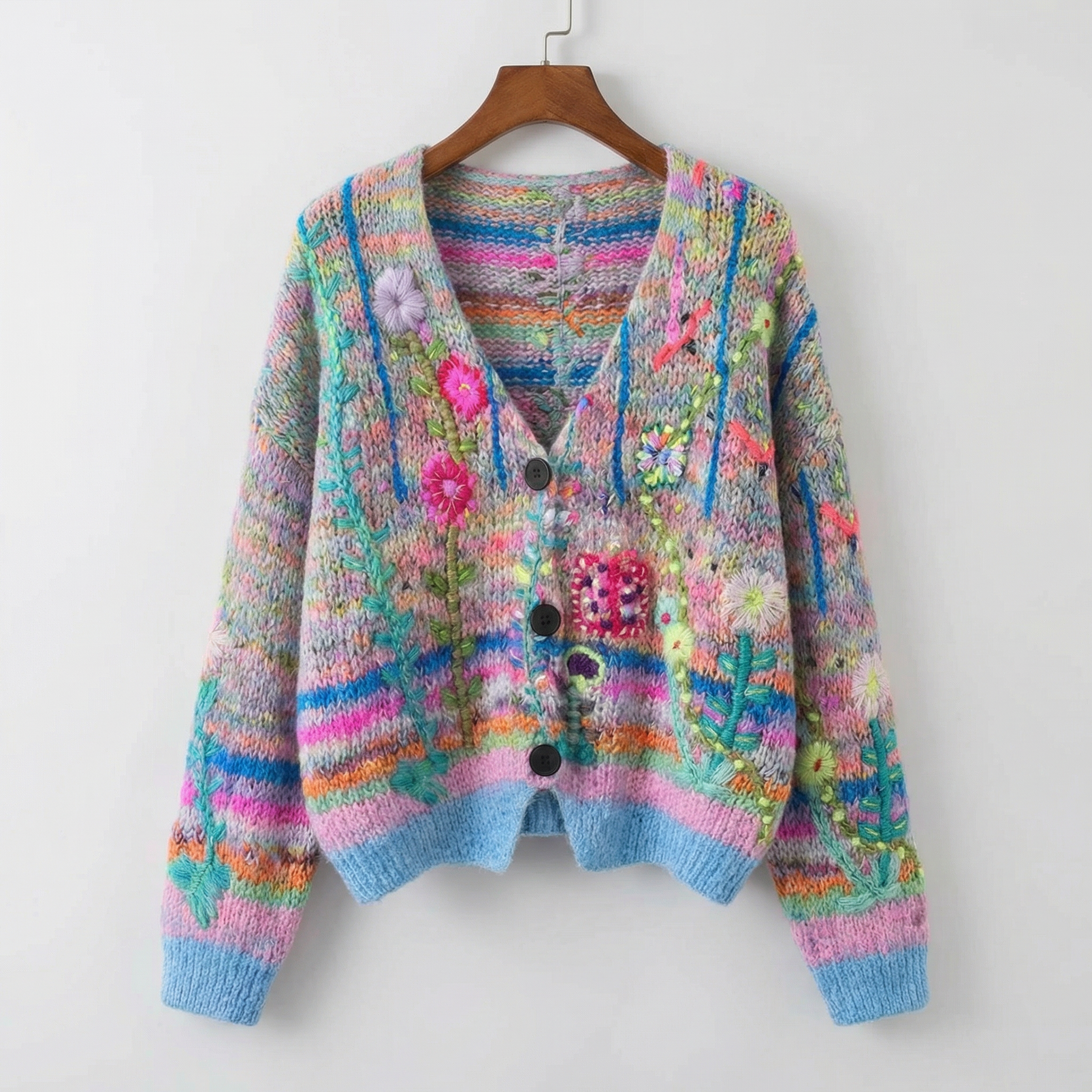 The Solene Bohemian Cardigan is a vibrant expression of effortless style. With its multi-hued design and flowing bohemian character, it brings warmth, movement, and personality to any look. Designed to feel as good as it looks, this cardigan blends comfort with eye-catching charm for everyday wear.